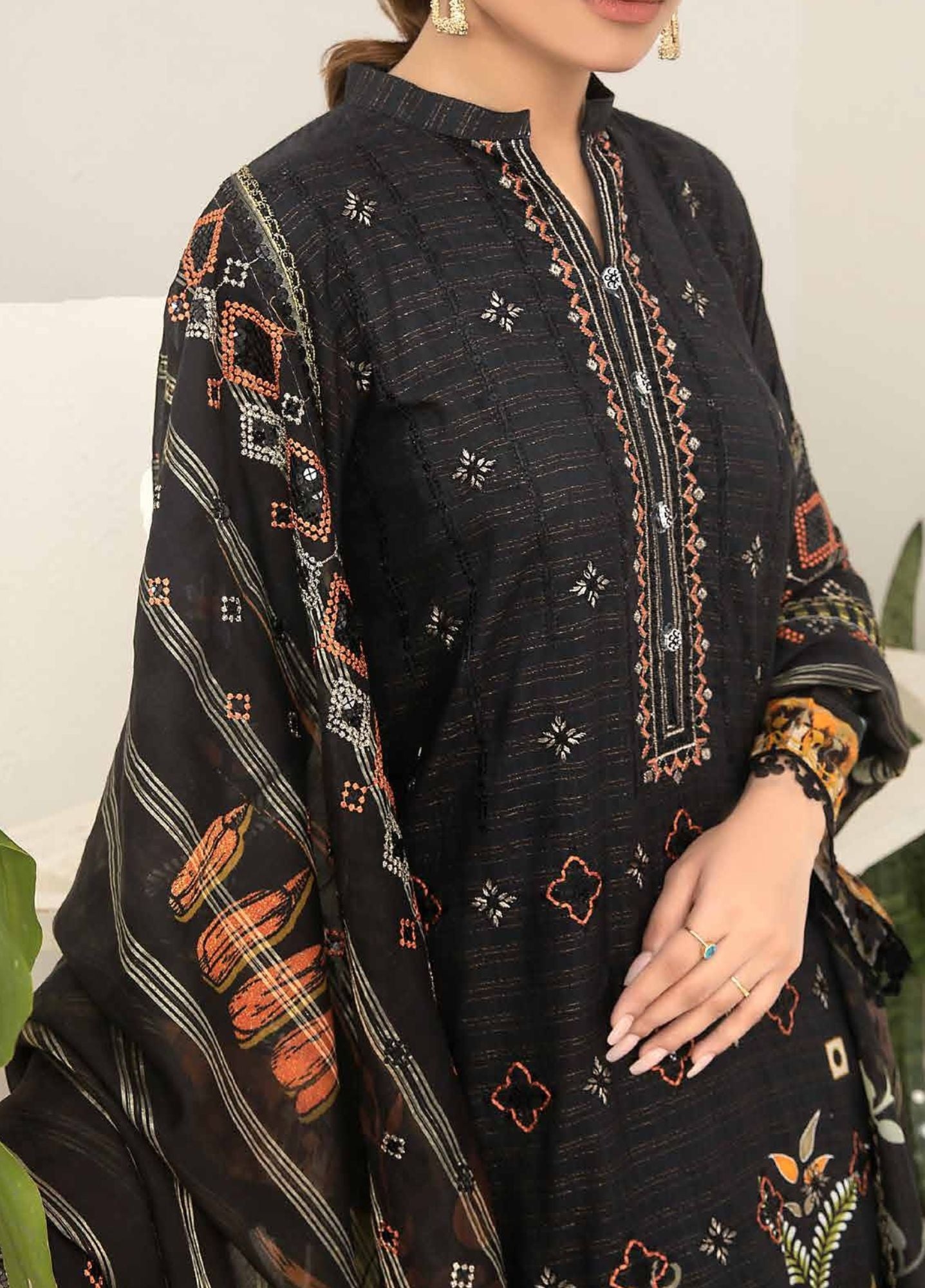 Black - Embroidered Luxury Viscose Linen 3PC - Unstitched