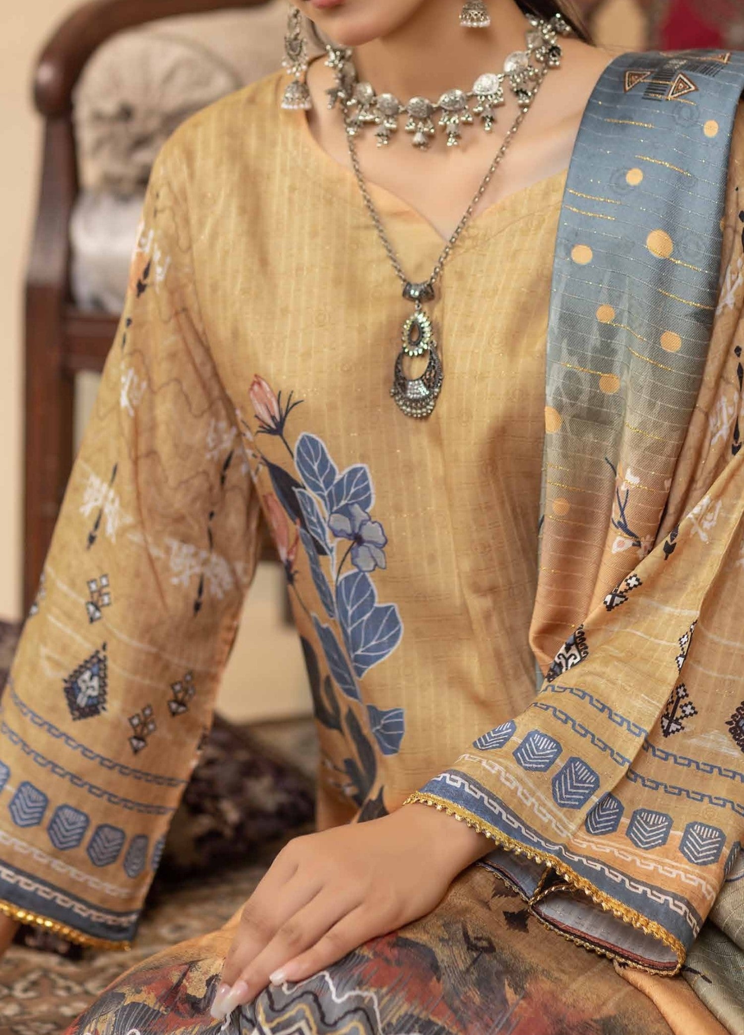 Digital Printed Unstitched 3 Piece Luxury Linen - Almond