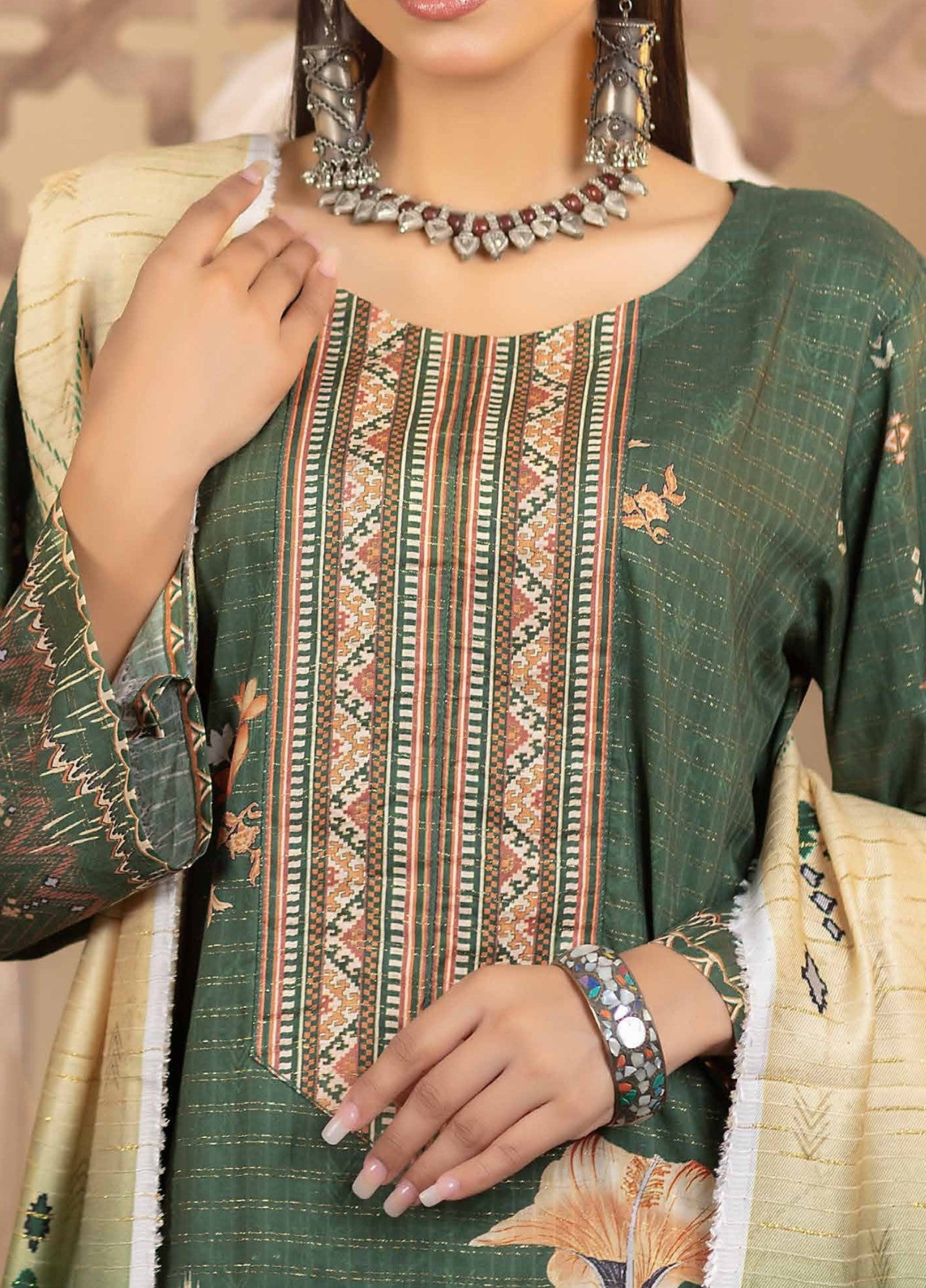 Digital Print Golden Zari linen Shawl - 2.5 Meter
