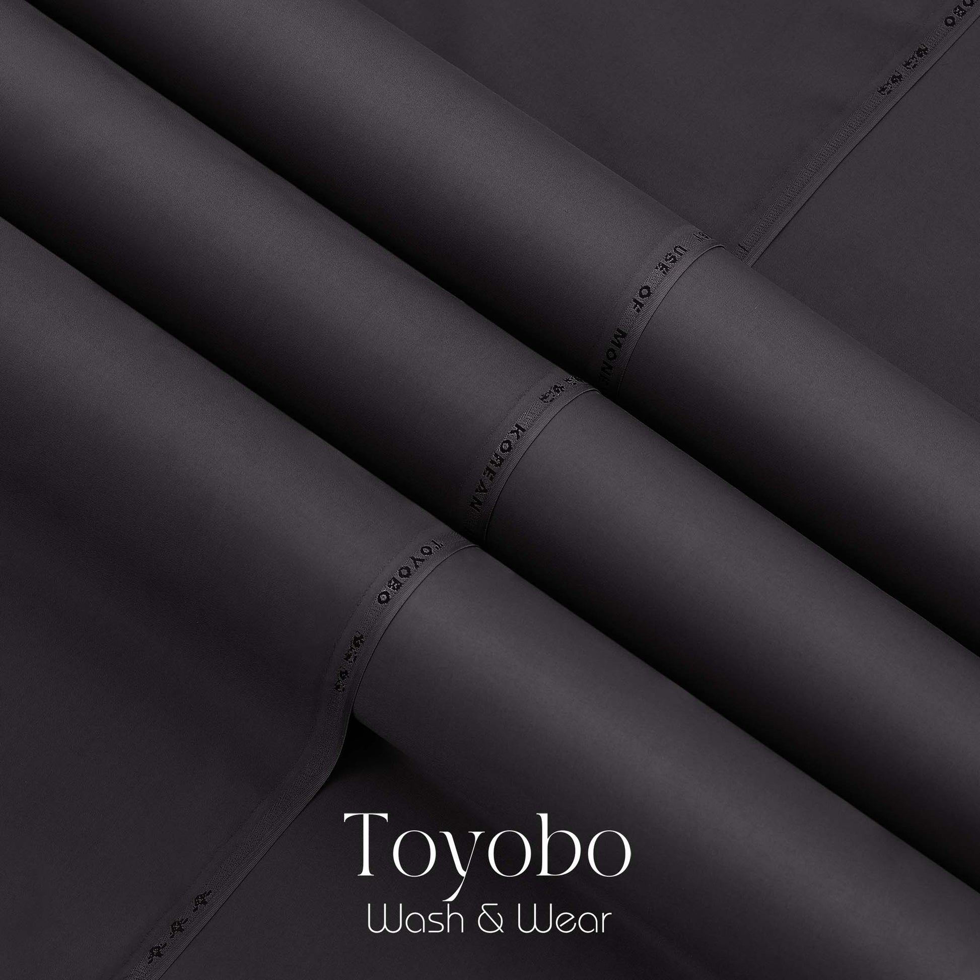 "Korean Toyobo" by Faateh is a superior quality poly-viscose blended fabric. It has a dim Luster and feels soft to the touch. Also, it has smoothness with excellent drape and is processed with an anti-shrink & anti-wrinkle finish. It is one of the high-end fabrics that suit all occasions, whether they are formal or just going out to work. Toyobo is soft and has a dim Luster. It is medium-weight and does not cause skin irritation like polyester for some.