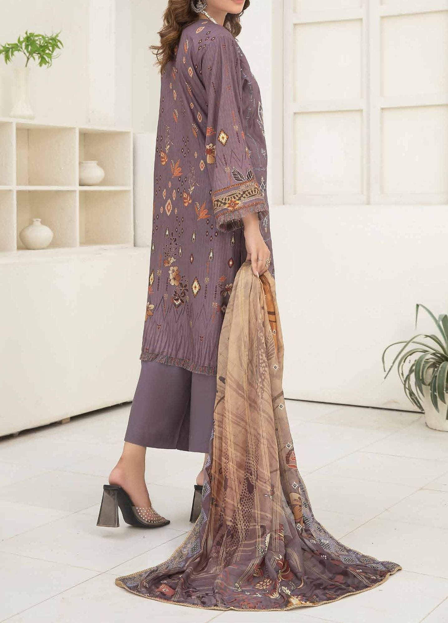 Lite Purple - Embroidered Luxury Viscose Linen 3PC - Unstitched