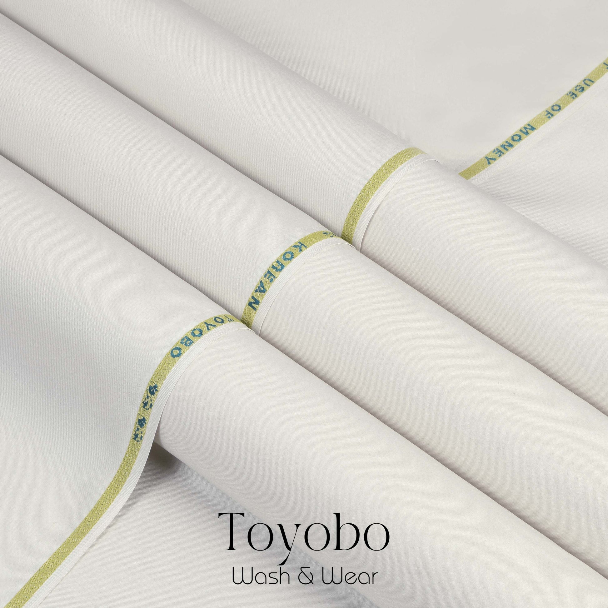 "Korean Toyobo" by Faateh is a superior quality poly-viscose blended fabric. It has a dim Luster and feels soft to the touch. Also, it has smoothness with excellent drape and is processed with an anti-shrink & anti-wrinkle finish. It is one of the high-end fabrics that suit all occasions, whether they are formal or just going out to work. Toyobo is soft and has a dim Luster. It is medium-weight and does not cause skin irritation like polyester for some.