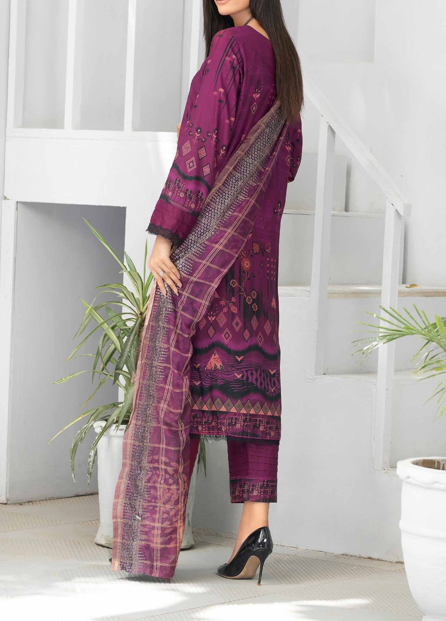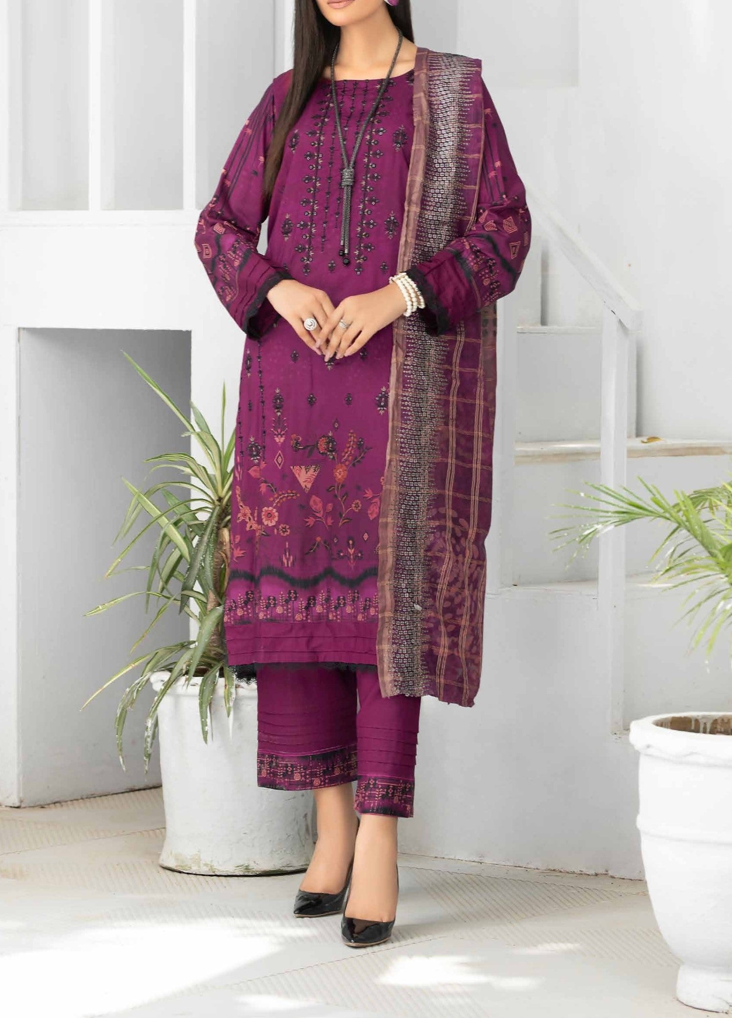 Plum - Embroidered Luxury Linen 3PC - Unstitched